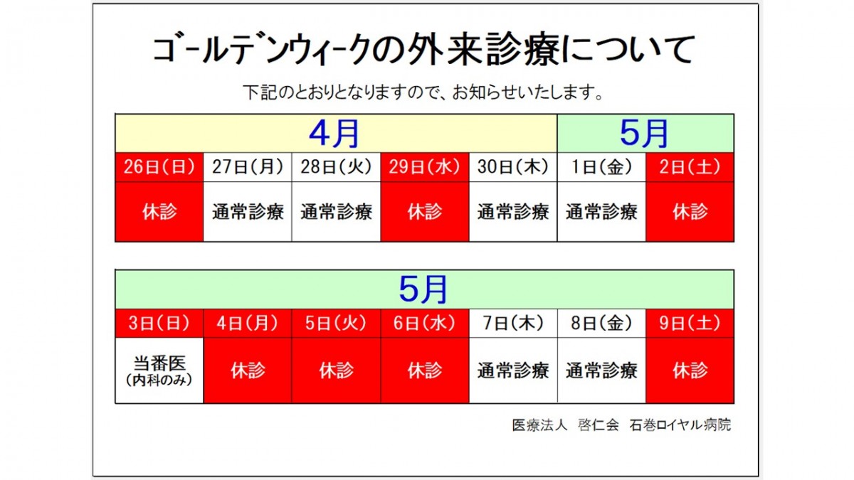 ゴールデンウィークの外来診療について