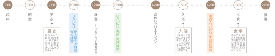 入院当日からリハビリテーションを開始します。理学療法士・作業療法士・言語聴覚士がそれぞれ専門的なリハビリを提供いたします。